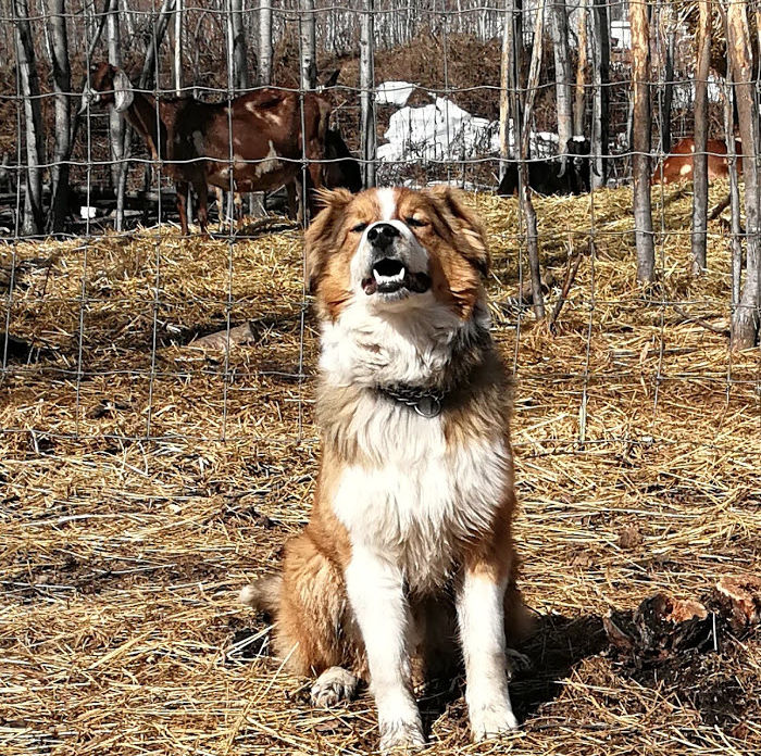I took Laddie down to the barnyard on Christmas day but didn't have a phone on me to take pics. He showed that he's a thinker with some self preservation instincts, which I prefer to a pup that jumps headlong into situations without thought for safety. He basically watched me closely and stayed out of goat range. A good first intro.